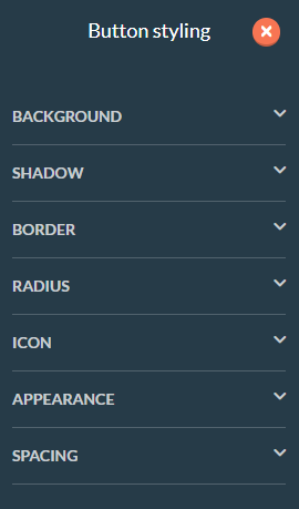 When you click the gear wheel you will open the Button Styling menu. Here you can edit the background, shadow, border, radius, icon, appearance or the spacing of the button.