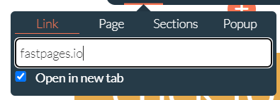 When selecting the Popup option, you can make a popup appear when a user clicks that button.