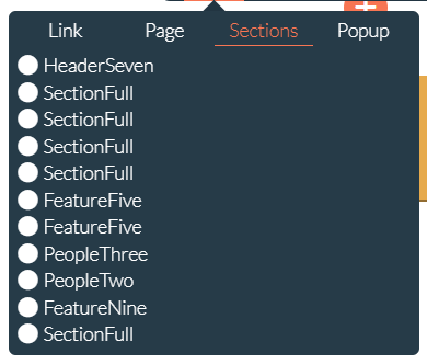 When selecting the Sections option, you can make your button link to any section from the page your button is located on.