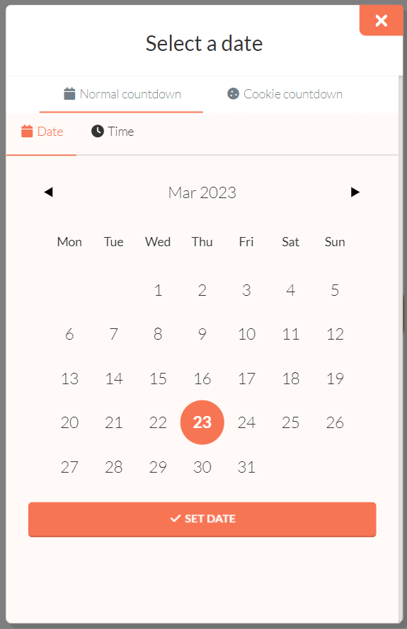 Everyone who visits your landing page will get their "own" countdown. You can add a cookie countdown by clicking cookie countdown, next to normal countdown.