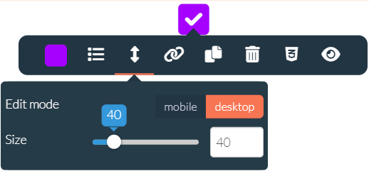 With the arrow icon you can edit the size of the icon for both the desktop and the mobile version.