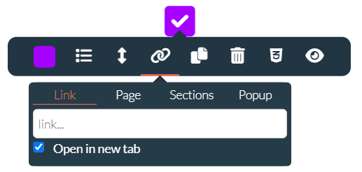 With the chain icon, you can add a hyperlink to the icon. This hyperlink can send the user to a specific URL, a different page from within your project, any section on the current page or a popup can appear.