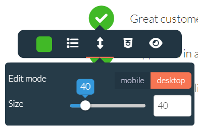 By clicking the arrow icon, you can change the size of an icon for either the desktop or the mobile version.