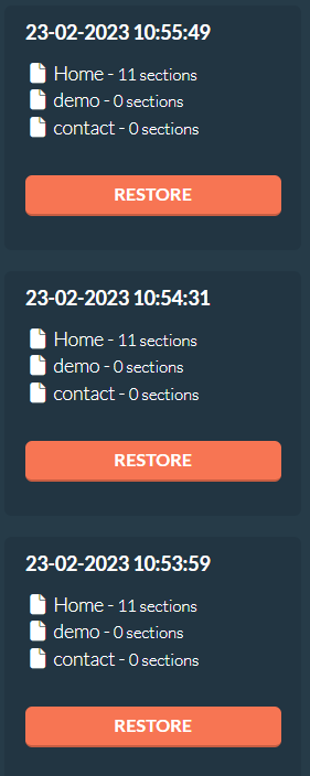 Every 5 minutes FastPages will make a copy of your current project. You can find these copies under the clock icon in your left side panel.
