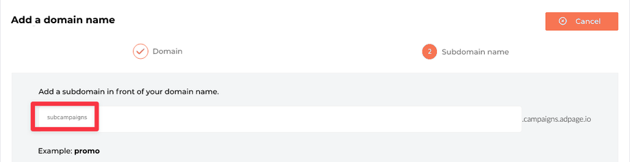 2. Now enter your subdomain name.