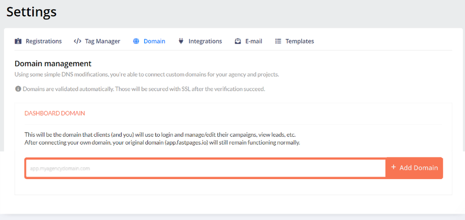 Here you can insert your own domain and click on the button "Add domain". After you have done this you will see the following screen: